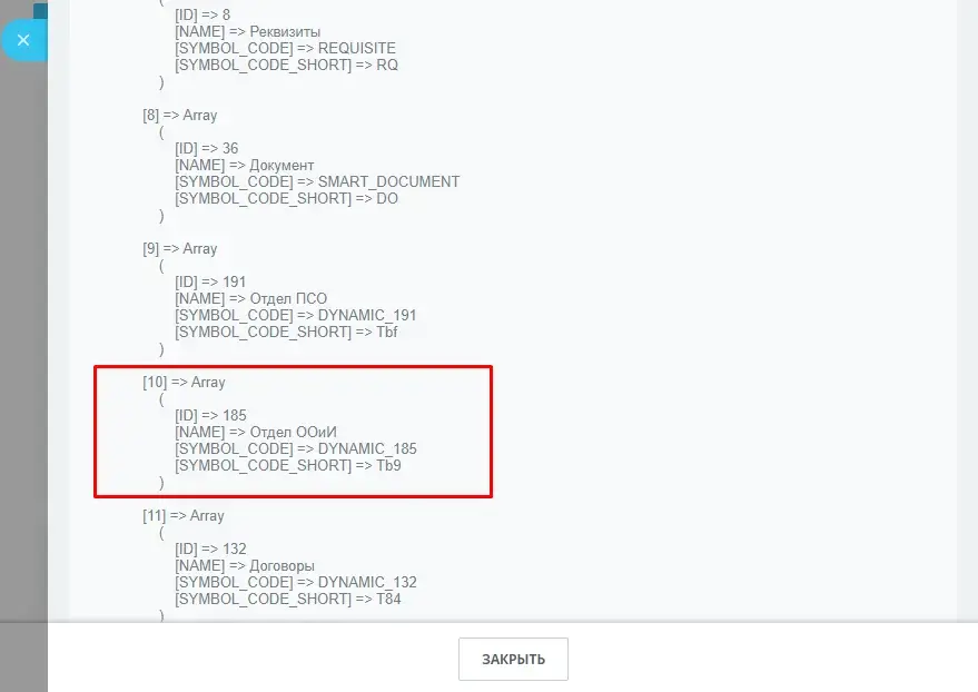 Чтобы действие "Получить информацию об элементе CRM" возвращало значение, необходимо включить в настройках смарт-процессах следующие настройки: