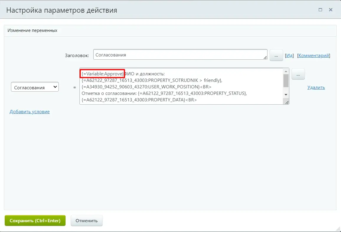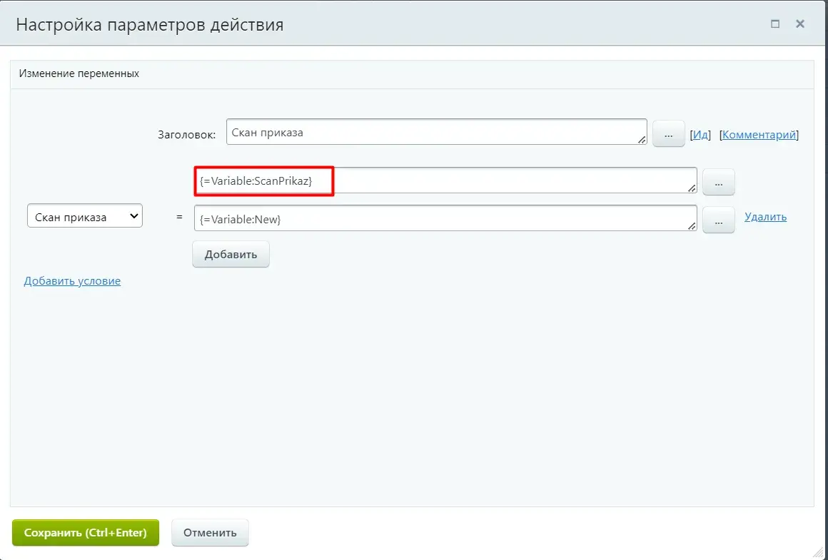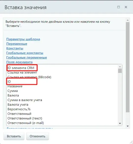 Где {=A24388_98030_17242_51455:TaskId} — ID задачи из вставки значения дополнительных результатов.