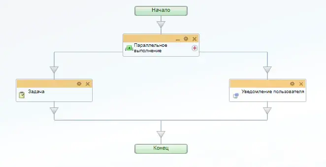 Если в настройках действия "Задача" установить "ожидание до завершения задачи", то для того, чтобы, к примеру, отправить уведомление, нам пригодится действие "Параллельное выполнение". Для того, чтобы сперва создавалась задача необходимо поместить это действие в левую ветвь, а действие с уведомление установить справа. В таком случае нам будет доступен ID созданной задачи и его можно будет вставить в ссылку в уведомлении.