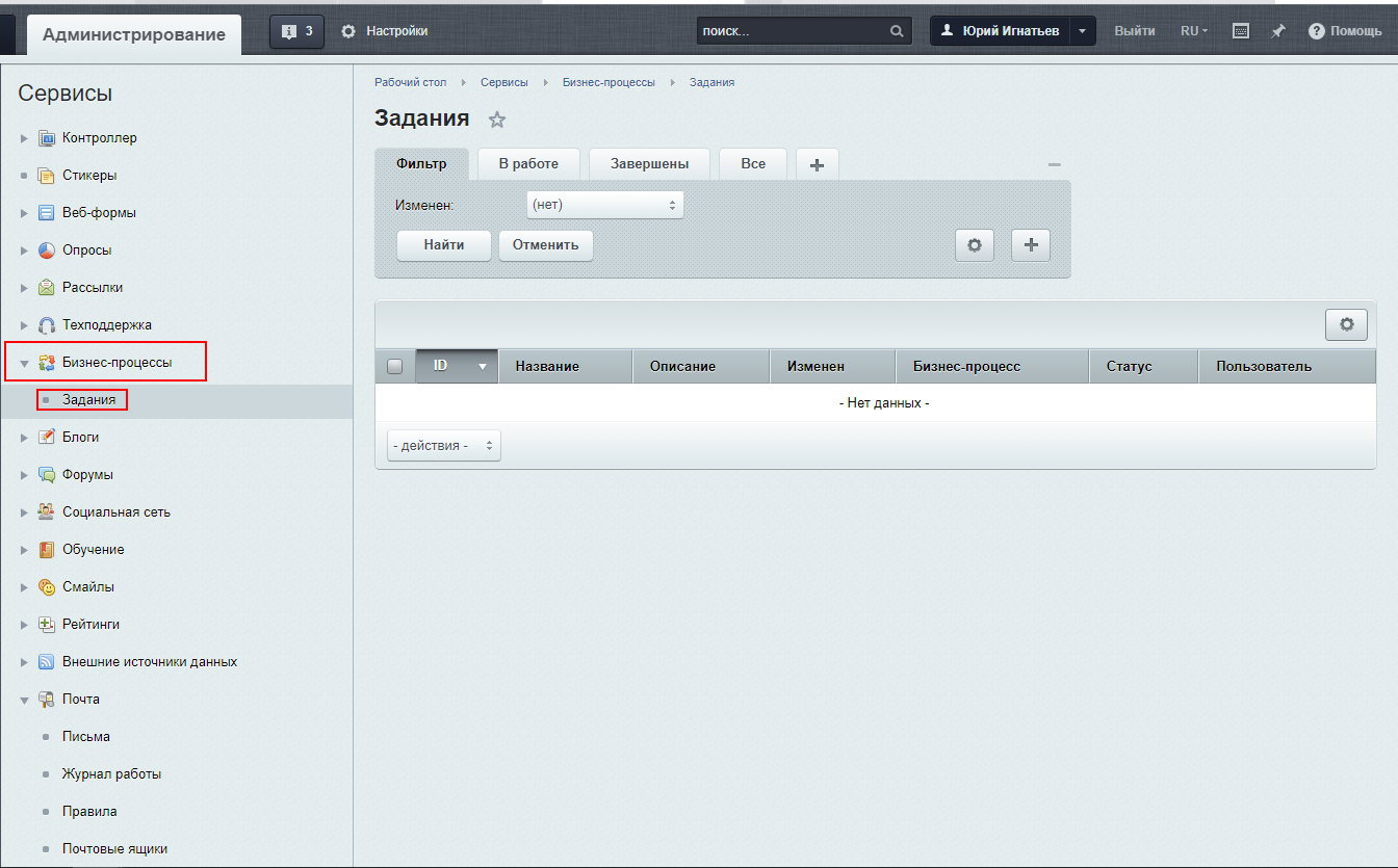 Для этого всего лишь перейдите Администрирование → Сервисы → Бизнес-процессы → Задания.